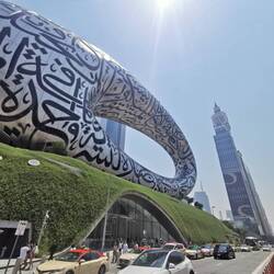 Zu fuss zur Dubai Marina. Dann mit 2x umsteigen mit der metro zum Museum of the future. Dubai mall und burj Khalifa. Chaos rueckfahrt und um 18 Uhr auf schiff