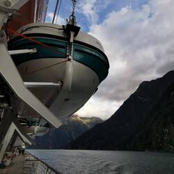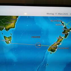 Es ging wieder raus aufs offene Meer immer gen Westen Richtung Tasmanien. Am frühen Morgen Windstärke 12 und Dauerregen. Selbst Shuffleboard musste ausfallen