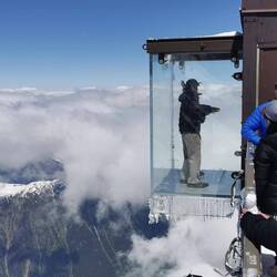 Auf dem Aguille di Midi gab es diverse Aktivitäten. Es ging hoch und runter und als I-Tuepfchen mit dem Aufzug auf 3842m hoch. Der Kreislauf blieb stabil, aber man merkte die Höhe und man sollteもっと詳しく