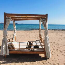 Um 7 Uhr war ein toller Sonnenaufgang. Danach noch eine Stunde geschlummert. Während Anja im Pool schwimmen war. Um 9 Uhr Fruehstuecken