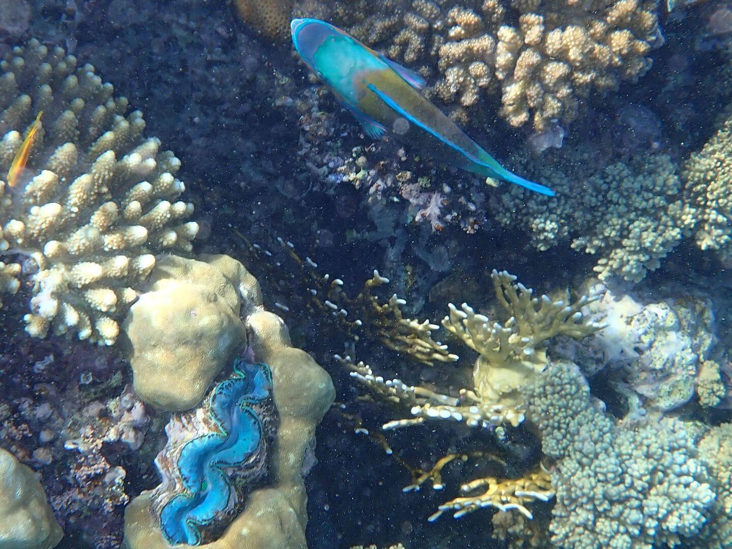 Heute liefen wir ca. 1 oder 2km nach rechts vom hotel zum uebernachten Steg. Dort war der baer los. Das riff war toll. Viele bunte korallen und auch fische