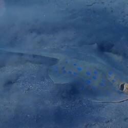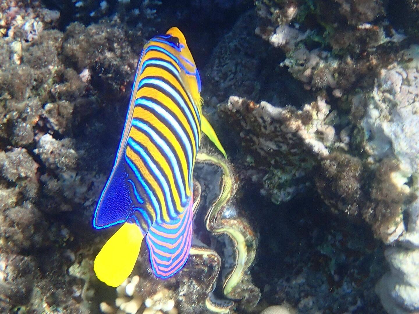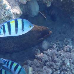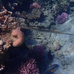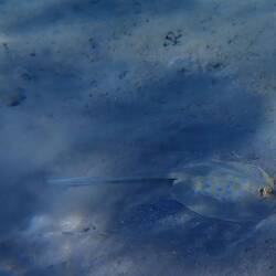 Wir liefen bis kurz vor den korallen baenke und entdeckten dort einen Rochen der sich gerade einbuddelte