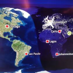 Ca. 2 Stunden verlief der Flug Ueber den Oman und dann Ueber den Indischen Ozean an die Suedkueste