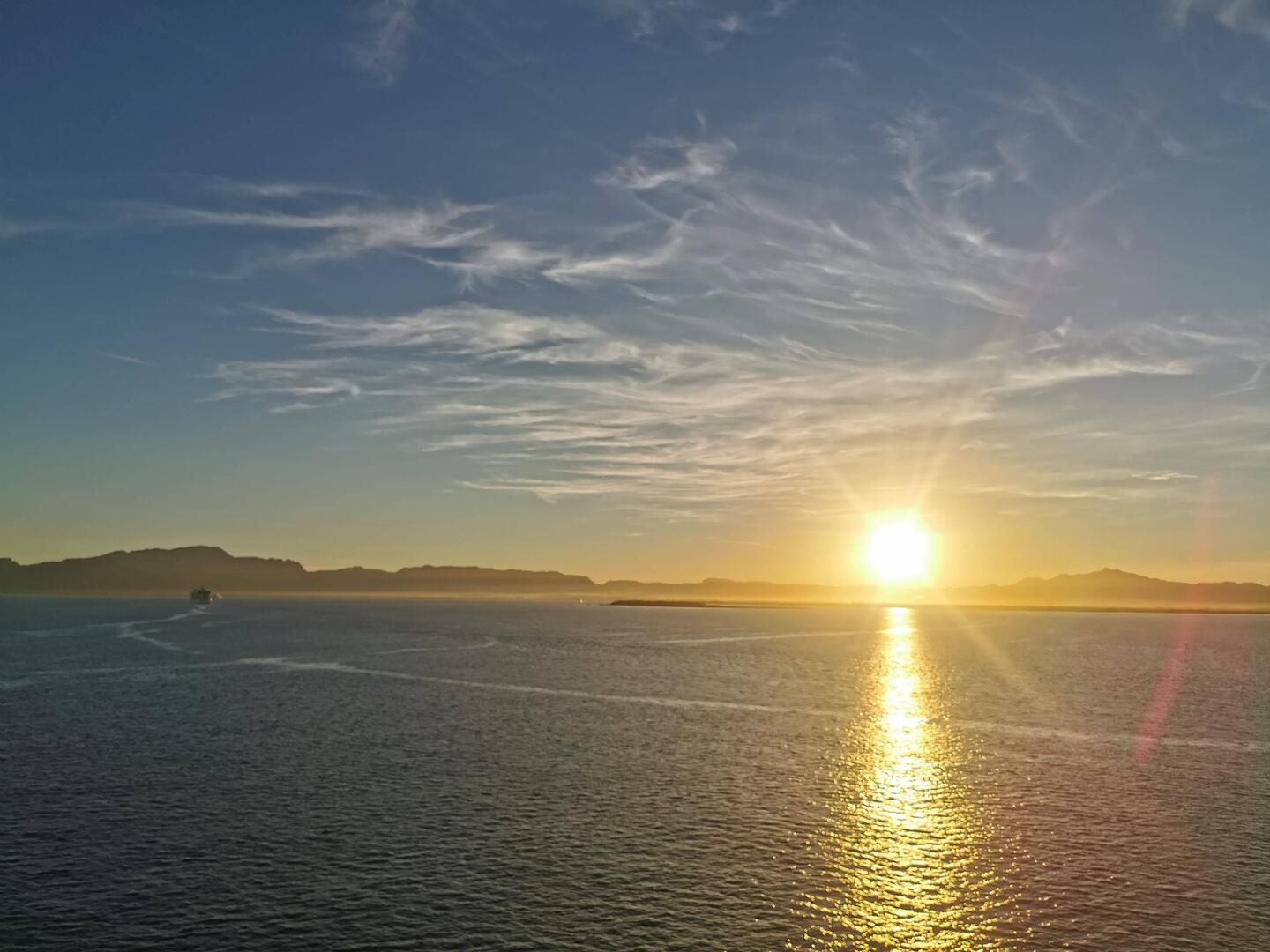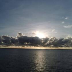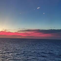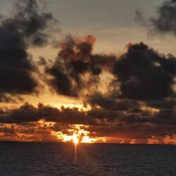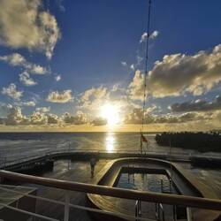 Morgens um 6 uhr schoener Sonnenaufgang vor Fiji. Wur strebten den Hafen von Lautoka an