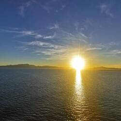 Am Abend schoener Sonnenuntergang und Ausfahrt aus der Traumbucht von James Cook