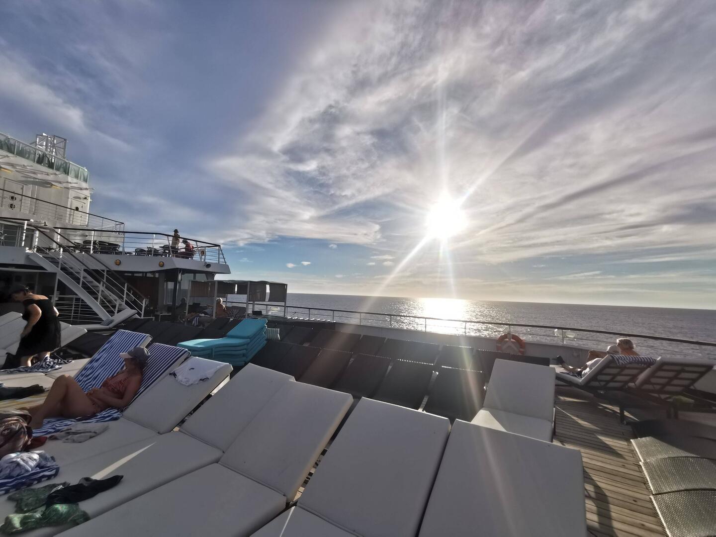 Dann folgte wieder ein Seetag wo man schnell schatten suchen musste, und nach unserer Gymnastik wurden wir auch fündig.