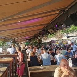 Mit der sbahn nochmal in die Altstadt und Currywurst essen. Am Rheinufer alt trinken