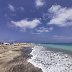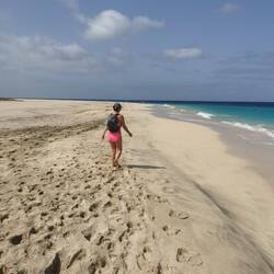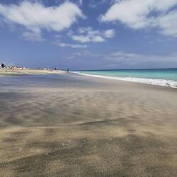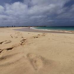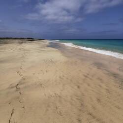 Tiefer Sand und schöne Farben des Meeres. Ca. 10km bis Santa Maria.
