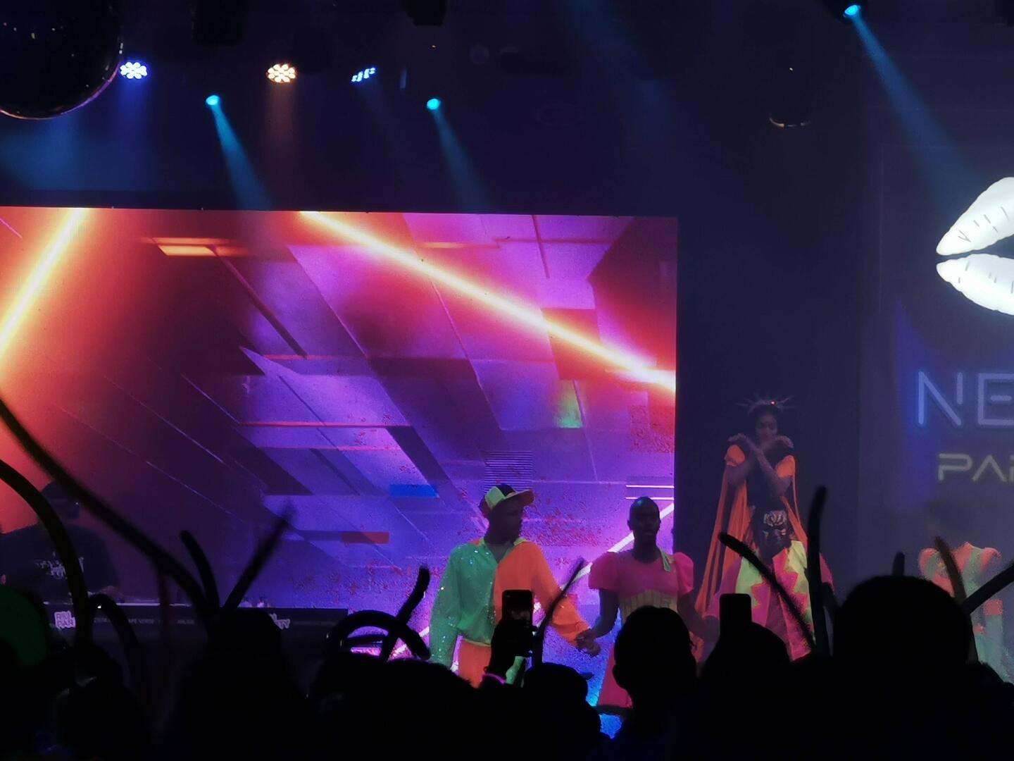 Um 21 Uhr startete die neonparty fuer 3 hotels. Sehr laut und schrill