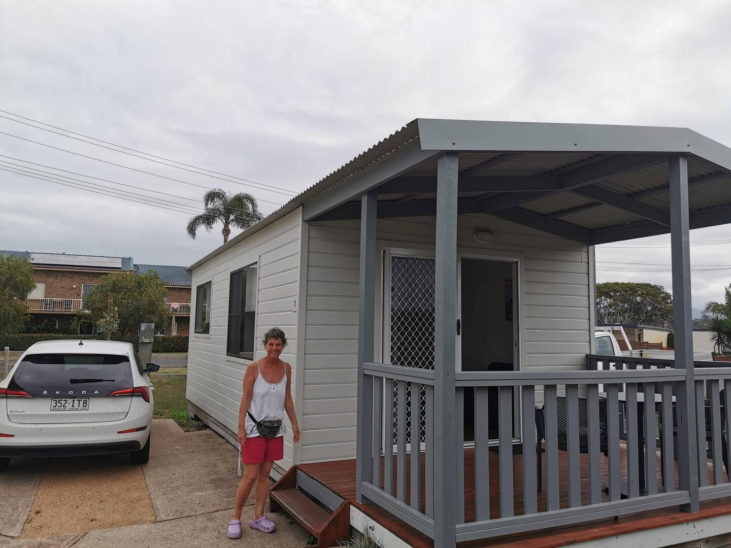 Um 16 Uhr in merimbula. 30 km vorher bewoelkt es sich. Bekommen huette 1 im Ferienpark. Schoene huette mit Terrasse. Am Kilometerlangen Strand spazieren. Viele kleine Fische liegen am Strand. ZurRead more