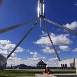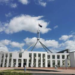 Um 15 Uhr endlich am Capitol Hill angekommen. Mit Aufzug nach ganz oben. Tolle Aussicht bis zum War Museum. Zurück in die Stadt mit Stopp am alten Parlament. In der Stadt Pub gesucht