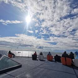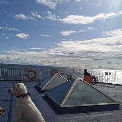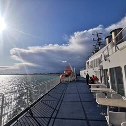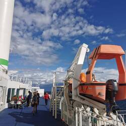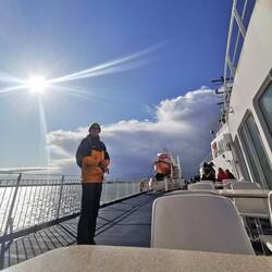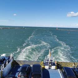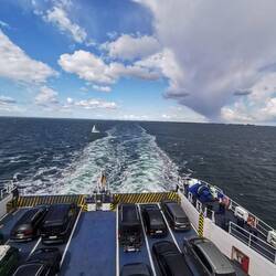 Fast pünktlich legte die faehre ab zur 2stuendigen Ueberfahrt nach Daenemark. Unterwegs mal drinnen, spaeter überwiegend draussen die frische seeluft genossen
