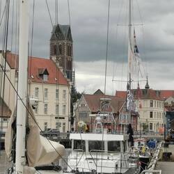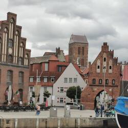 Gegen 11. 30 Uhr in Wismar und noch stark bewoelkt. Quer durch die Stadt Ueber holprigen Kopfsteinpflaster.