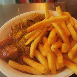 Ausgehungert bestellte ich in der Altstadt Currywurst mit Pommes und beim Ueriger ein Alt. Dann schnell zum Hauptbahnhof und in den Ueber vollen und verspaeteten Regional Zug.