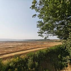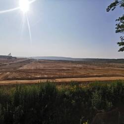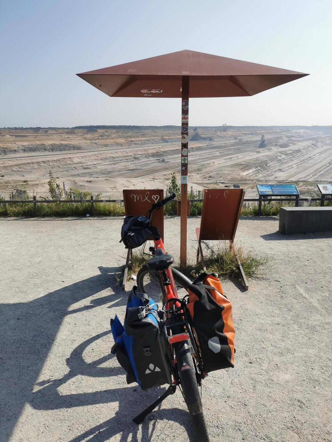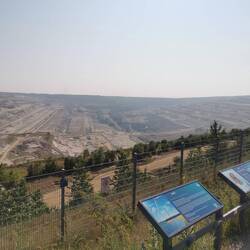 Es ging fast 10km immer geradeaus mit einer Biegung. Dann nochmal 5km und man war am Aussichtspunkt Terra Nova. Beeindruckende Aussicht in das Braunkohleloch was mal der groesste künstliche seeEn savoir plus