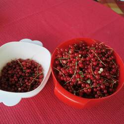 Morgens ca. 3kg Johannisbeeren gepflueckt und entsaftet . Es kamen 20 Gläser bei raus. Nach dem badesee