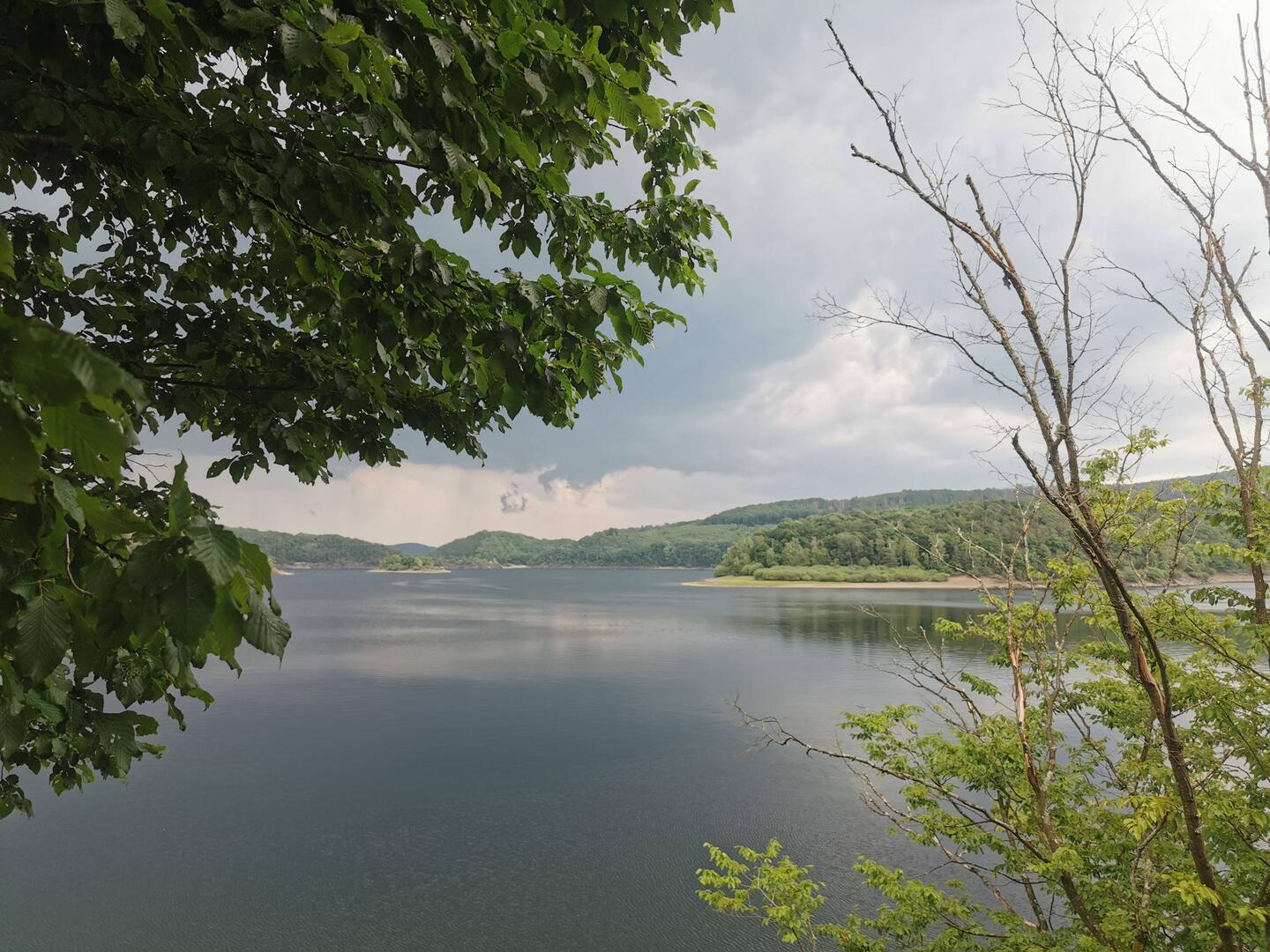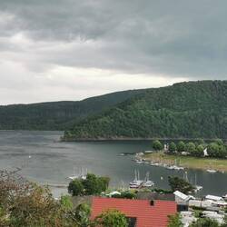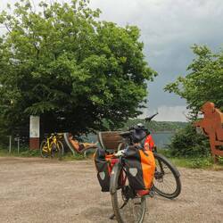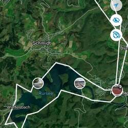 Von Heimbach dann mit dem Rad links am Rursee vorbei nach Rurberg