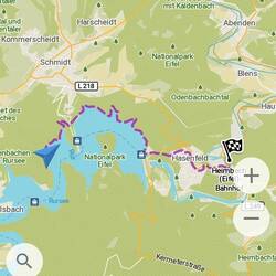 Von niedeggen nach zerkall hinunter und 6km mit der Bahn nach obermaubach. Dort Assen wir unseren Kuchen mit Sahne von Flink. Weiter ueber Bilstein nach Gey. Dann Ueber birgel nach Dueren undEn savoir plus