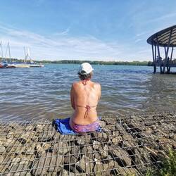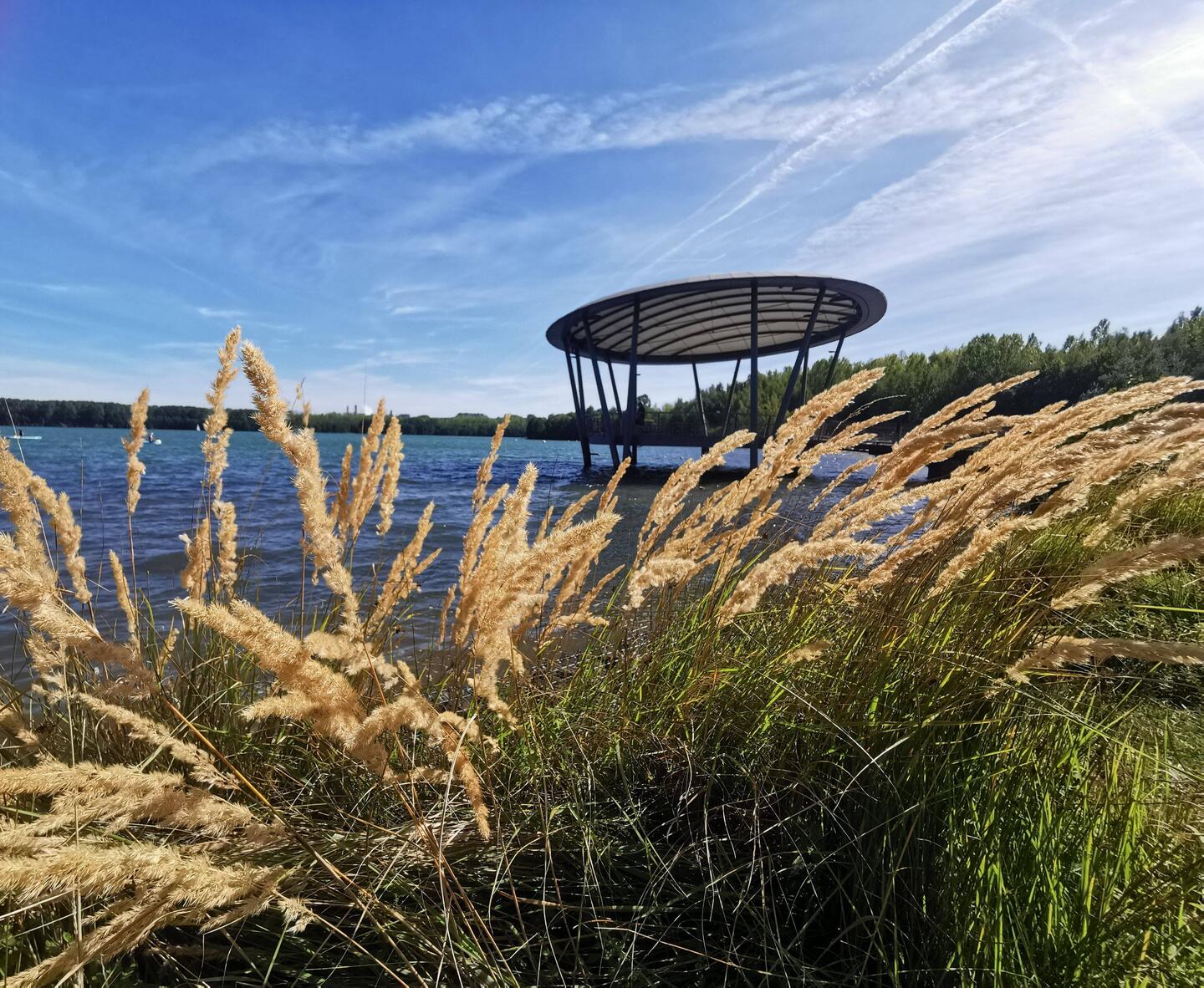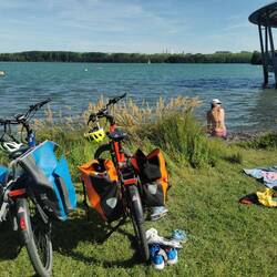 Heute sollte es nochmal 28 bis 30 Grad werden und so radelten wir Ueber Langerwehe und weisweiler zum blausteinsee. Anja ging ein paar Mal noch schwimmen. Mir reichte es einmal.