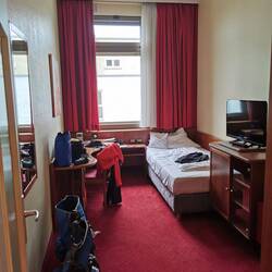 Ca. 15.30 in Tauberbischofsheim. Am hotel badische Hof stand man vor verschlossener tuer. Und mit mir 5 weitere. Es dauerte.