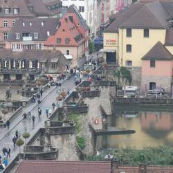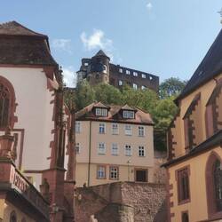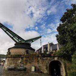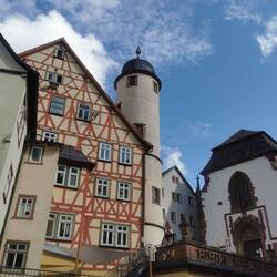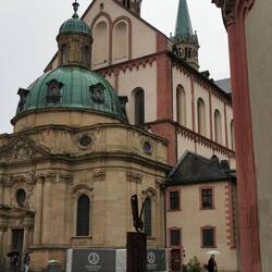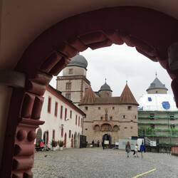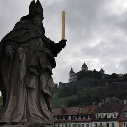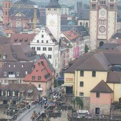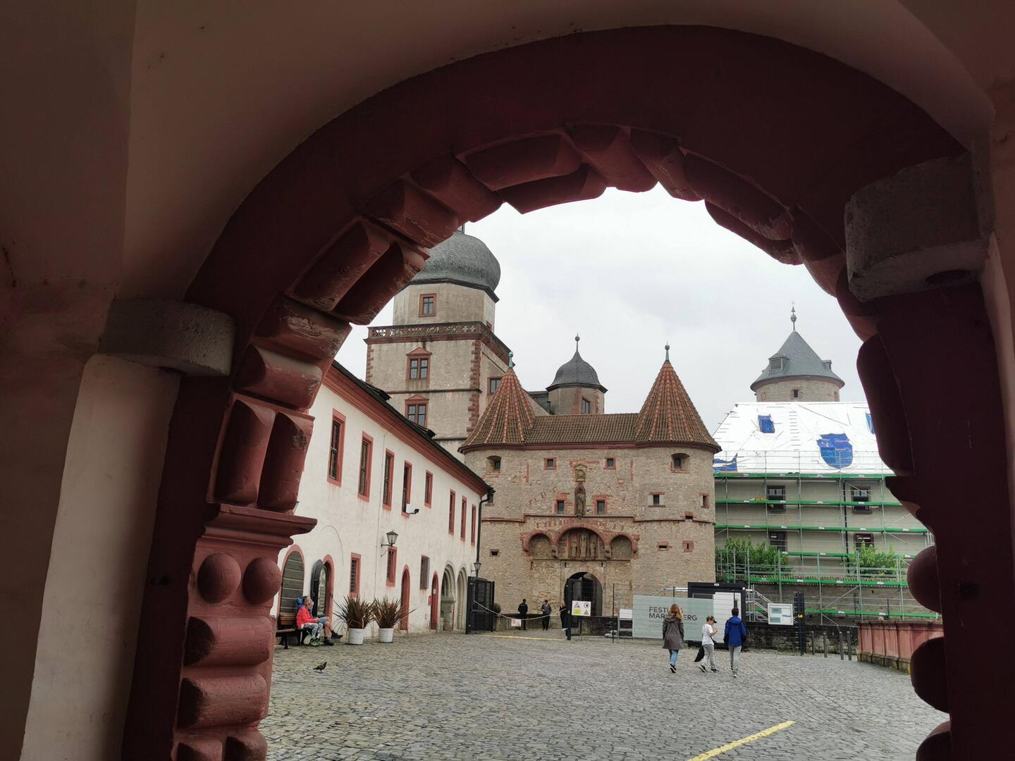 Hinter der mainbruecke gingen 172 Stufen zur Marienburg hoch. Leider oben Baustelle, aber tolle Aussicht auf Wuerzburg