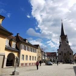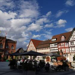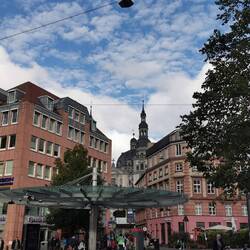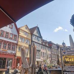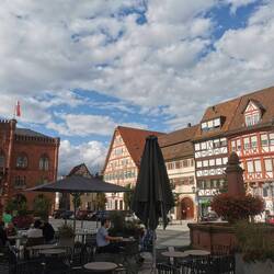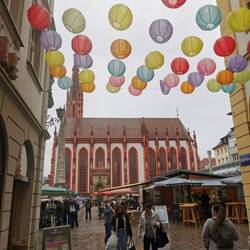 Kurz geduscht und dann nochmal in die Stadt. Am Marktplatz Currywurst gegessen
