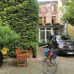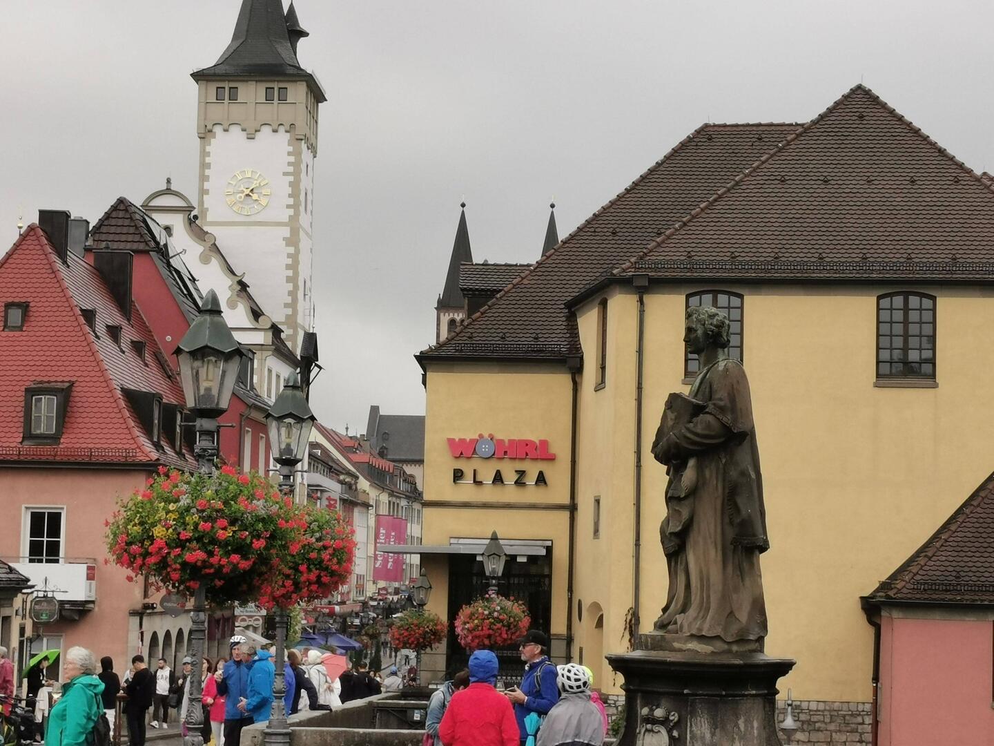 Kurz vor wuerzburg fängt es an zu regnen und ich musste den knappen Kilometer zum hotel noch die regen hose anziehen. Im hotel Amberger. Kurz frisch gemacht und Stadtbesichtigung mit dem SchlossBaca lagi