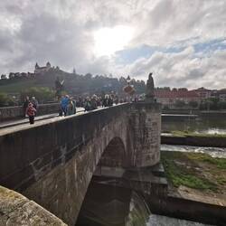 Die Mainbruecke ist Treffpunkt der schoppentrinker