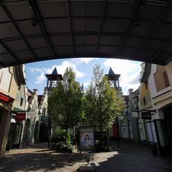 Am Ende der Baustelle das wertheim village. Ein riesiges outletcity