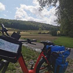 Weiter ging die wilde Fahrt und jetzt nicht mehr lieblich. 20 km vor Rothenburg wurde es huegeliger und das Akku litt