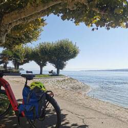 In Konstanz einen Milchkaffee getrunken und weiter Richtung faehre nach Meersburg
