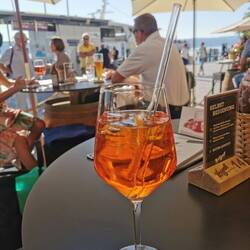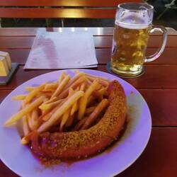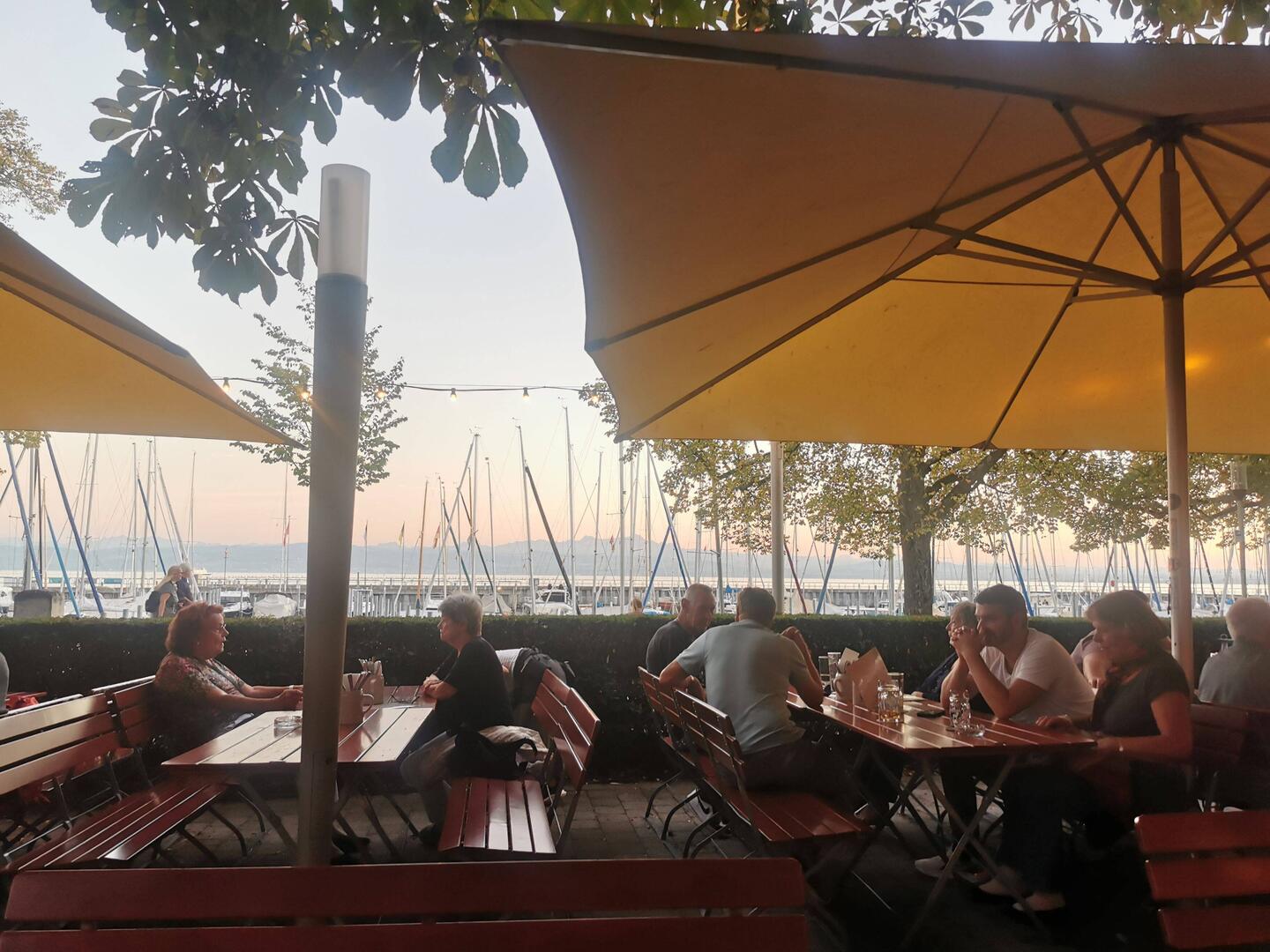Der Regionalexpress hatte natuerlich verspaetung und nach 19 Uhr war ich wieder in Friedrichshafen. Kurz umgezogen und zur Promenade. Currywurst mit Pommes und ein helles.