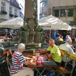 Wir gingen ins Paulaner Essen und danach fuhren wir mit der strassenbahn zum Fernsehturm und tranken dort Kaffee. Danach noch Kreuz und quer durch die city