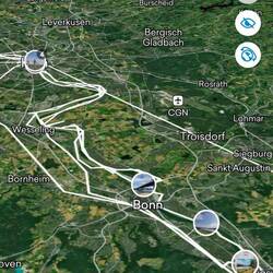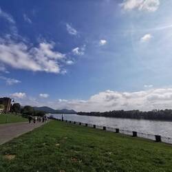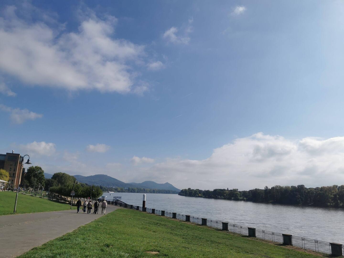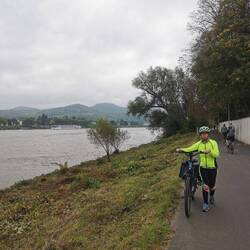 Kurz vor Bonn kommt die Sonne endlich raus. Schöner Blick aufs Siebengebirge. Dann weiter nach Beuel und Ueber Mohndorf nach koeln