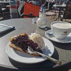 Gegen 13 Uhr bei Café flink und dort heidelbeerkuchen gegessen.