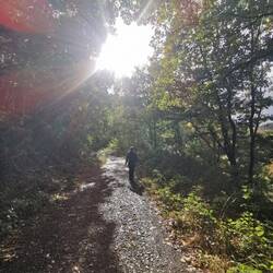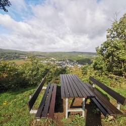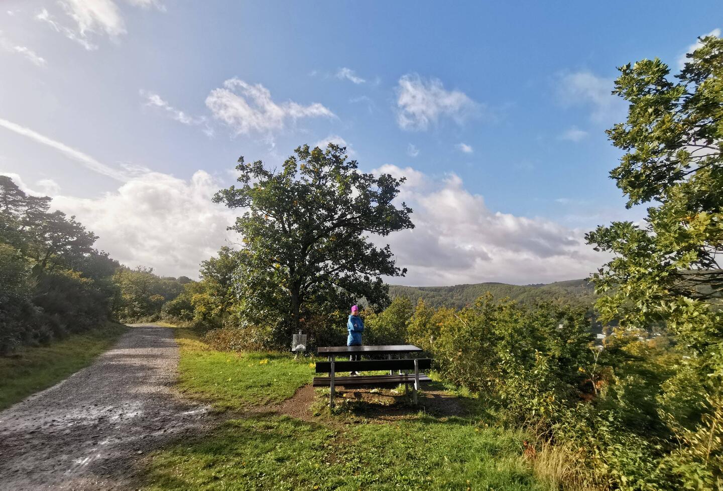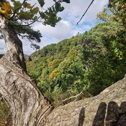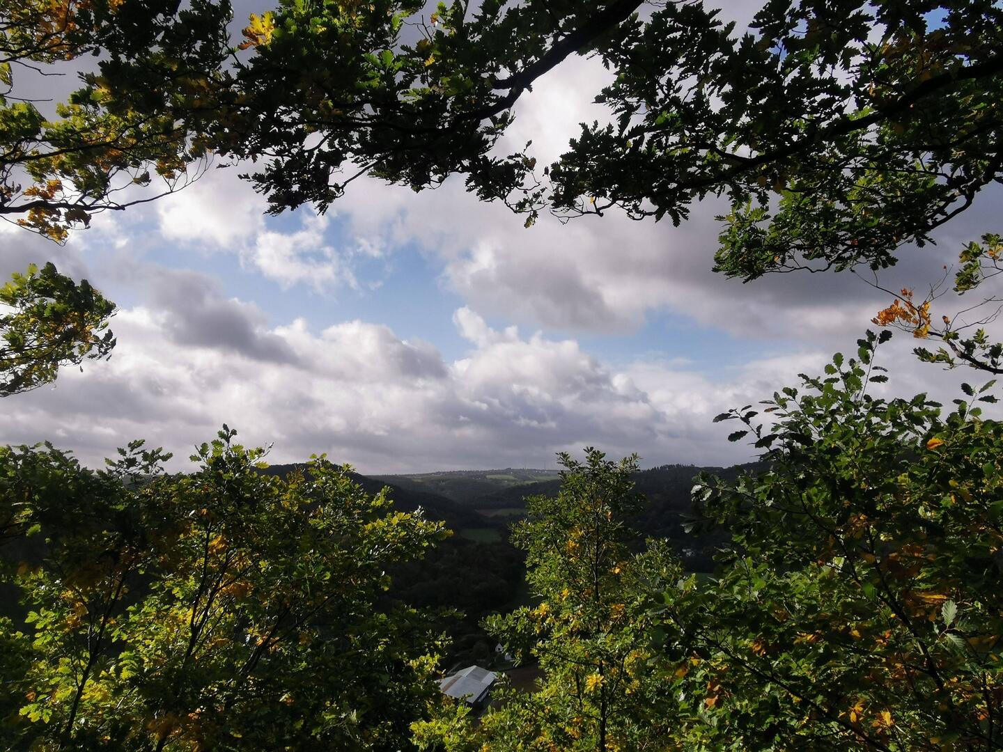 Wir wollten an die Ahr, aber morgens war es sehr stuermisch und wechselhaft. Also wanderten wir wieder auf dem Felsenrundweg ab obermaubach Richtung Nideggen