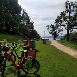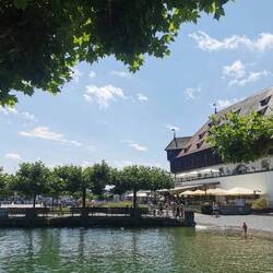 Um 9 Uhr mit dem Rad zuerst nach Radolfzell und dort in der sonne Milchkaffee getrunken. Danach in Allensbach schwimmen und weiter