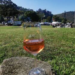 Am ersten weinstand auf dem rotweinwanderweg Pause. Nachbar Tisch mit 8 Frauen versorgte uns großzügig. Federweissen und Blanc de noir