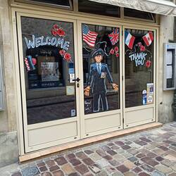 Am 06.06.1944 kamen ab 0 Uhr im Schutz der Dunkelheit die Fallschirmschwinger. Einer blieb am Kirchturm hängen. Auf den Kirchplatz waren deutsche Soldaten daher wurden auf beiden Seiten SoldatenLeia mais