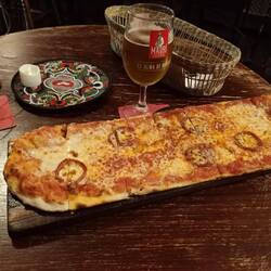 Zum Abendessen gab es Pizza und ein Bierchen.