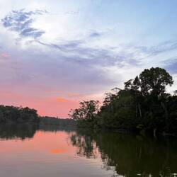 Day 1: After our trek from Coca, we relaxed for the afternoon and then went on an evening canoe ride with Anna and Dario. We saw (and heard) crazy howler monkeys and a ton of birds. The sunset was so magical that I didn't even get freaked out when bats swarmed all around our boat at dusk. We canoed around until 7, and then headed to dinner at 7:30. Of course, everything operated on Ecuadorian time, so we didn't wrap up dinner until after 9, which didn't seem like a problem until they told us that our wake-up would be at 5:30 the next morning. Talia fell asleep by 10 and wasn't psyched to hear the knock on our door at 5:30 the next day.