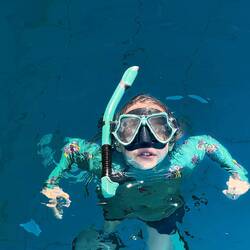 —In addition to the beach, Talia loves snorkeling in the pool. Sometimes she floats for an hour, just humming to herself through the snorkel—content in her own little sensory deprivation chamber. I’m glad she loves this activity, but I wish it were easier to confirm she’s alive when floating facedown in the pool.