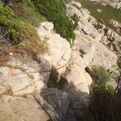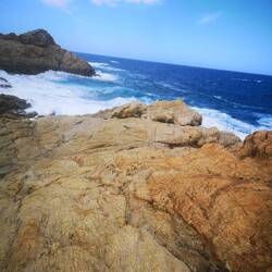Einmal bin ich statt abzubiegen einfach gerade aus gelaufen. Meine Unachtsamkeit wurde bestraft, indem ich an Felsen klettern musste, die direkt am Meer entlang gingen.
