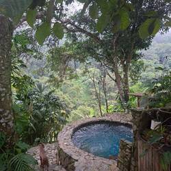 Nous arrivons à Tukawa, un hostel créé par trois Français. Nous nous y sentons immédiatement bien, en pleine nature. Une piscine surplombe la vallée, une jolie terrasse permet de boire un verre et de manger, les chambres sont charmantes et un coin hamacs complète l’ensemble. Nous déposons nos affaires puis place à la baignade 😍 ! L’eau est un peu fraîche – les températures ne sont pas encore celles de la côte caraïbe – mais ça fait du bien. Le coucher du soleil est superbe ! Nous prenons l’apéritif avant notre premier dîner.