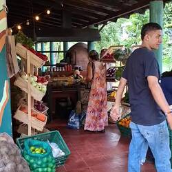 Le lendemain, nous nous réveillons sous une légère pluie. Malo est malade, un gros rhume. Isabelle et Stéphane traînent aussi ça depuis quelques jours : ça semble contagieux. Je croise les doigts, mais je sens que je ne vais pas y échapper ! Avec maman, nous faisons un peu de yoga avant un bon petit-déjeuner, puis nous retrouvons Fabian, notre guide du jour. Nous partons visiter les plantations de la ferme attenante à Tukawa.