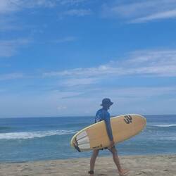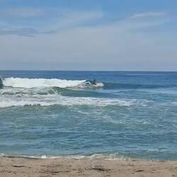 Repus, nous retournons à la plage. Les vagues sont grosses aujourd’hui. Un peu fatiguée, je reste sur le sable tandis que Malo se met à l’eau pour surfer. Il en ressort ravi. En route maintenant pour la sortie « grenouilles » !