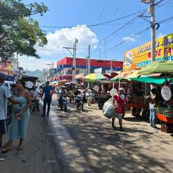 Après une nuit bercés par la pluie ruisselant sur le toit en tôle, nous nous dirigeons vers le centre du village. Nous nous arrêtons dans une petite boulangerie qui semble être le point de rassemblement. Tout le monde y prend son café accompagné d’un petit palito de queso frit. Nous suivons le mouvement!
