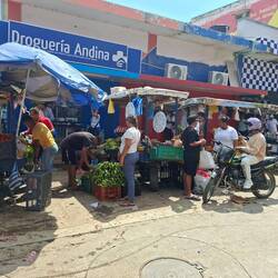 Le lendemain, nous prenons un petit déjeuner à l'hôtel : des œufs pericos et des arepas préparés par nos soins. Malo nous quitte pour un cours d'escalade avec Chris, et nous partons tous les cinq découvrir le centre de Bogotá. Les ruelles commerçantes et la bonne humeur des vendeurs marquent nos parents. Il y a plein de jolies choses. Sur la place Bolívar, un marché expose de nombreux bijoux, vêtements et cosmétiques. Nous partons en quête d’une carte SIM pour Stéphane, le papa de Malo, afin qu’il reste connecté pour gérer ses gîtes à distance, et d'une pharmacie pour Isabelle, la maman de Malo, qui est un peu enrhumée. Nous nous arrêtons auprès d'un vendeur ambulant qui propose, dans sa petite carriole, des cartes SIM et des protections de téléphone. Pour 10 €, Stéphane équipe son téléphone : carte SIM, protection et écran ! Un nouveau téléphone ! Un tour à la pharmacie et nous voilà équipés.