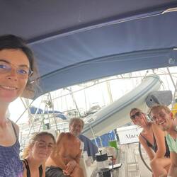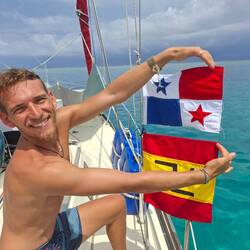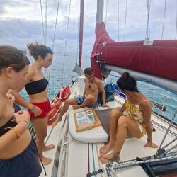 Le soir, nous invitons les Blue Moana à dîner. À six sur Noam, c’est un peu serré, mais ça va ! On mange un bon repas et on passe une belle soirée, qu’on termine en jouant à des jeux. C’est vraiment chouette de voyager à deux bateaux. En s’endormant, nous écoutons le podcast que Wanda a réalisé lors de leur traversée de la Colombie jusqu’ici. C’est très sympa : il y a de beaux esprits créatifs à bord 🩵