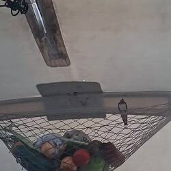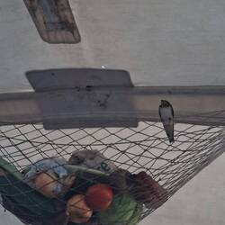 Les jolies lumières de fin de journée et une hirondelle qui vole autour du bateau : elle bat de ses minuscules ailes, elle semble perdue, ça arrive en mer. Elle essaye de se percher sur la grand-voile, s’y reprend à plusieurs reprises, finit par se poser sur la bôme, puis sur les bouts de ris. Finalement, elle réussit à se percher au-dessus de nos têtes, dans le filet de fruits et légumes. Elle est trop mignonne ! Elle va passer la nuit avec nous 🐦